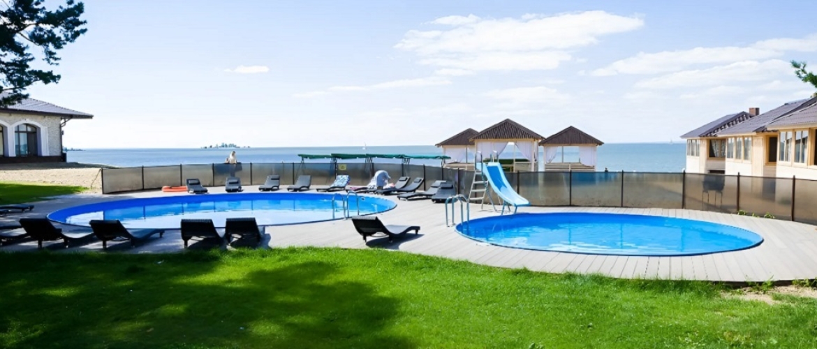 Для маленьких гостей предусмотрены детская комната с игровым модулем, яркий городок на улице с качелями и песочницей, а также аквагорка в бассейне. На территории работает анимационная команда.