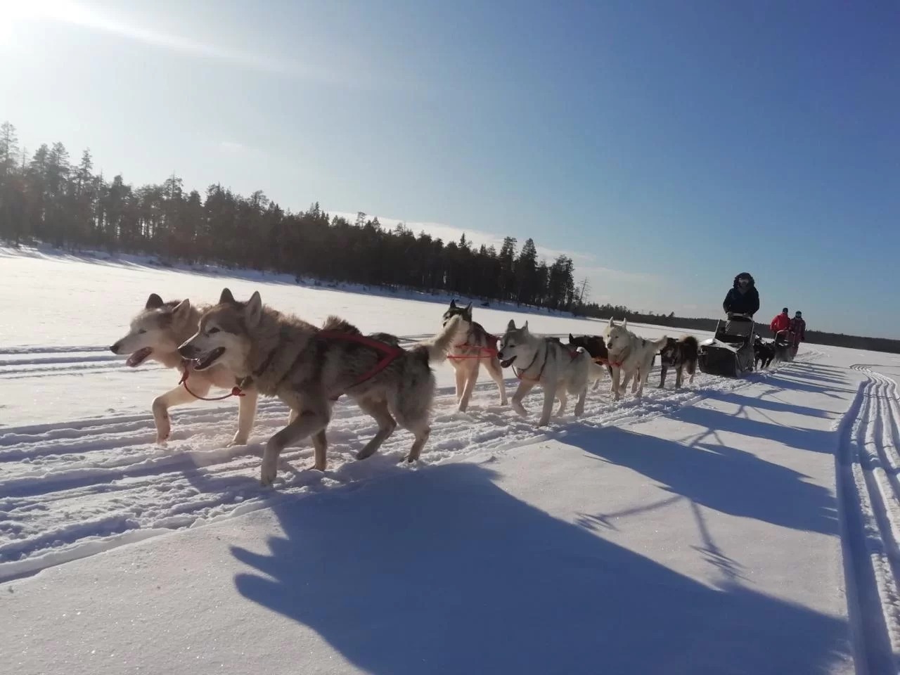 - Катание на собачьей упряжке 2 500 руб/человека по организованному маршруту 2 км (детям скидки)