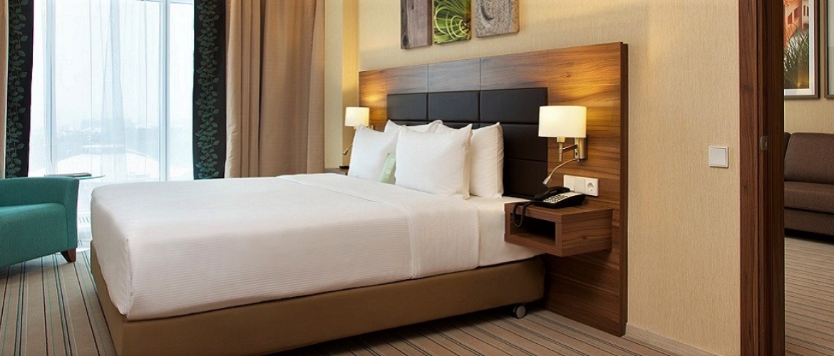Отель расположен в многоэтажном современном здании, оснащенном лифтами, которое включает в себя 102 комфортабельных и стильных номера. Отель предлагает двухместные номера категорий Бизнес, Люкс и Апартаменты, которые соответствуют европейским стандартам. Каждый номер оснащен качественной мебелью, необходимой бытовой техникой и санузлом с душевой кабиной или ванной. В апартаментах также оборудована мини-кухня.
