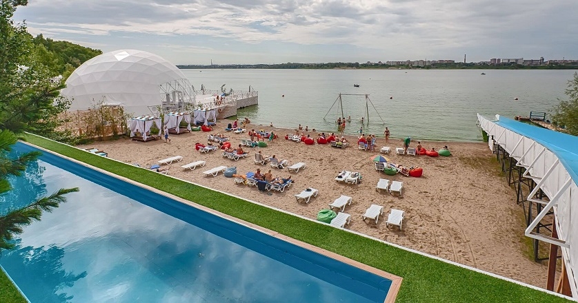 Гости парк-отеля имеют возможность абсолютно бесплатно посещать круглогодичный акватермальный комплекс. Летом на полукилометровом песчаном пляже работает открытый панорамный бассейн с видом на Бердский залив.