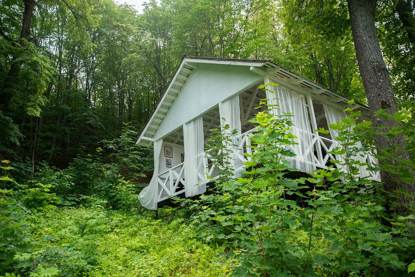 Обратите внимание! Беседка расположена на горе.