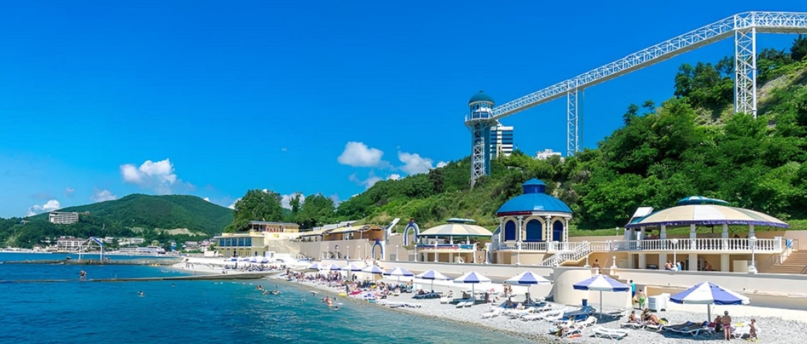 Санаторий имеет собственный пологий галечный пляж, который находится в 250-ти метрах от спальных корпусов. Для спуска на пляж оборудованы лифты. На пляже есть навесы от солнца, шезлонги. Есть площадка для пляжного волейбола, осуществляется прокат пляжного и спортивного инвентаря. Функционирует прокат катеров, скутеров, водных лыж, катамаранов, водных «бананов», «таблеток». Есть возможность для занятий виндсерфингом. Для детей оборудован бассейн с надувной горкой, надувной батут.