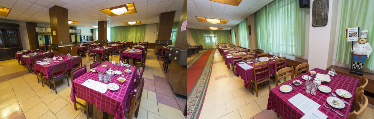 В санатории 5-ти разовое диетическое питание, назначенное лечащим врачом с учетом основного и сопутствующего диагнозов. Действует система предварительных заказов, учитываются интересы вегетарианцев, работает фитобар.