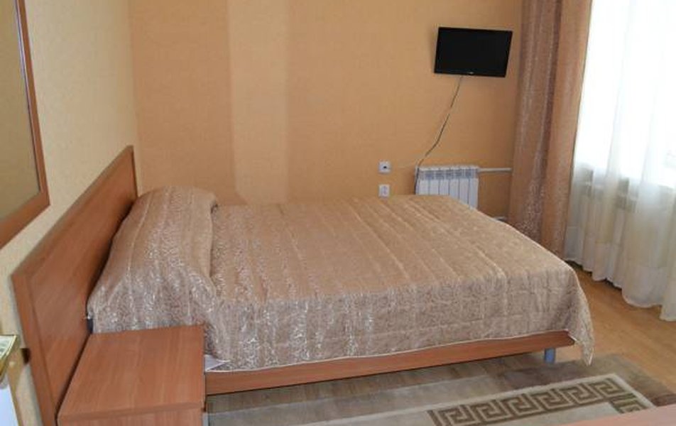 В номере: зеркало, кровать двуспальная, прикроватные тумбочки, стол, стул, шкаф, мини-холодильник, телевизор