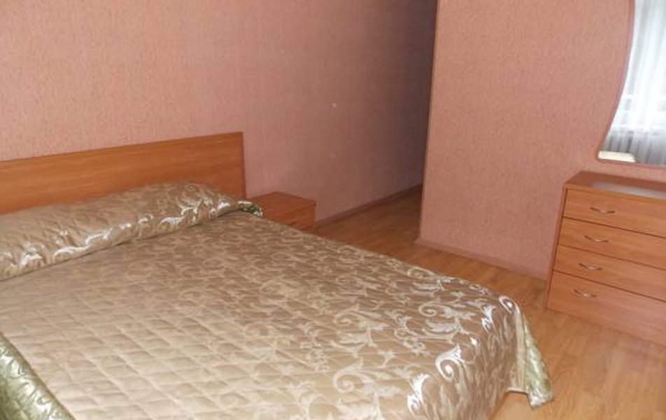 В номере: диван, зеркало, кровать двуспальная, прикроватные тумбочки, стол, стулья, шкаф, мини-холодильник, телевизор