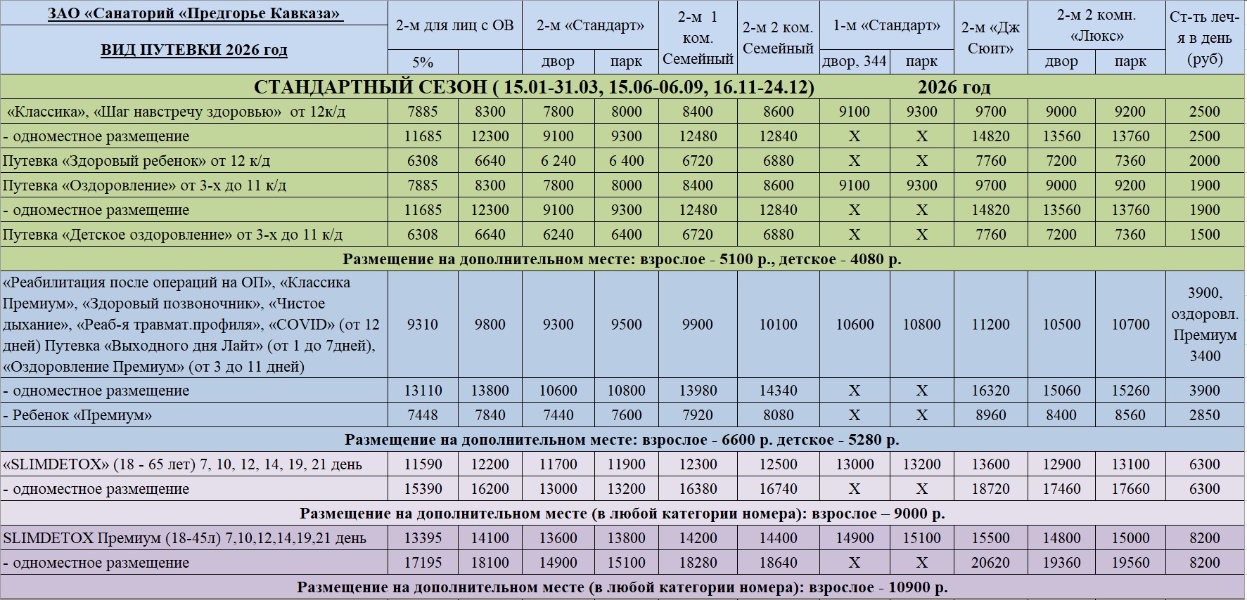 Бронирование путевок по ценам 2026 года в санаторий «Предгорье Кавказа»