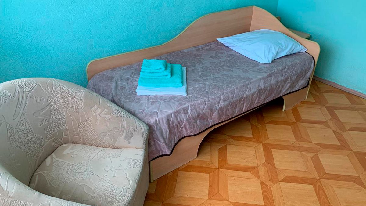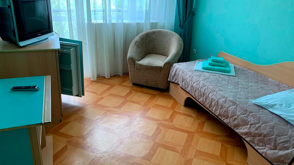 В номере: односпальная кровать, прикроватная тумба, стол, стул или кресло, холодильник, телевизор, wi-fi