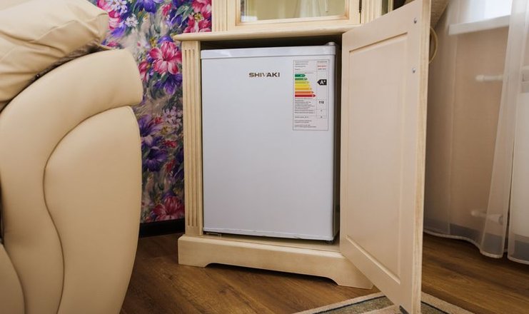 В номере: диван раскладной, кровать двуспальная, прикроватные тумбочки, столик журнальный, шкаф-купе, мини-холодильник, набор посуды, телевизор ЖК, чайный набор посуды, электрочайник
