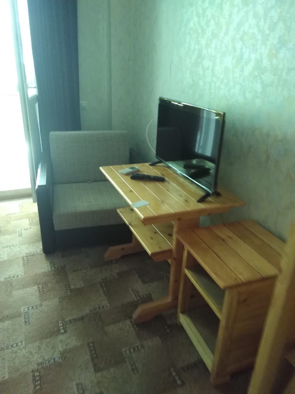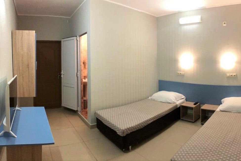 Оснащение номеров: односпальные или двуспальные кровати, прикроватные тумбочки, стол, стул, шкаф для одежды, холодильник, кондиционер, телевизор