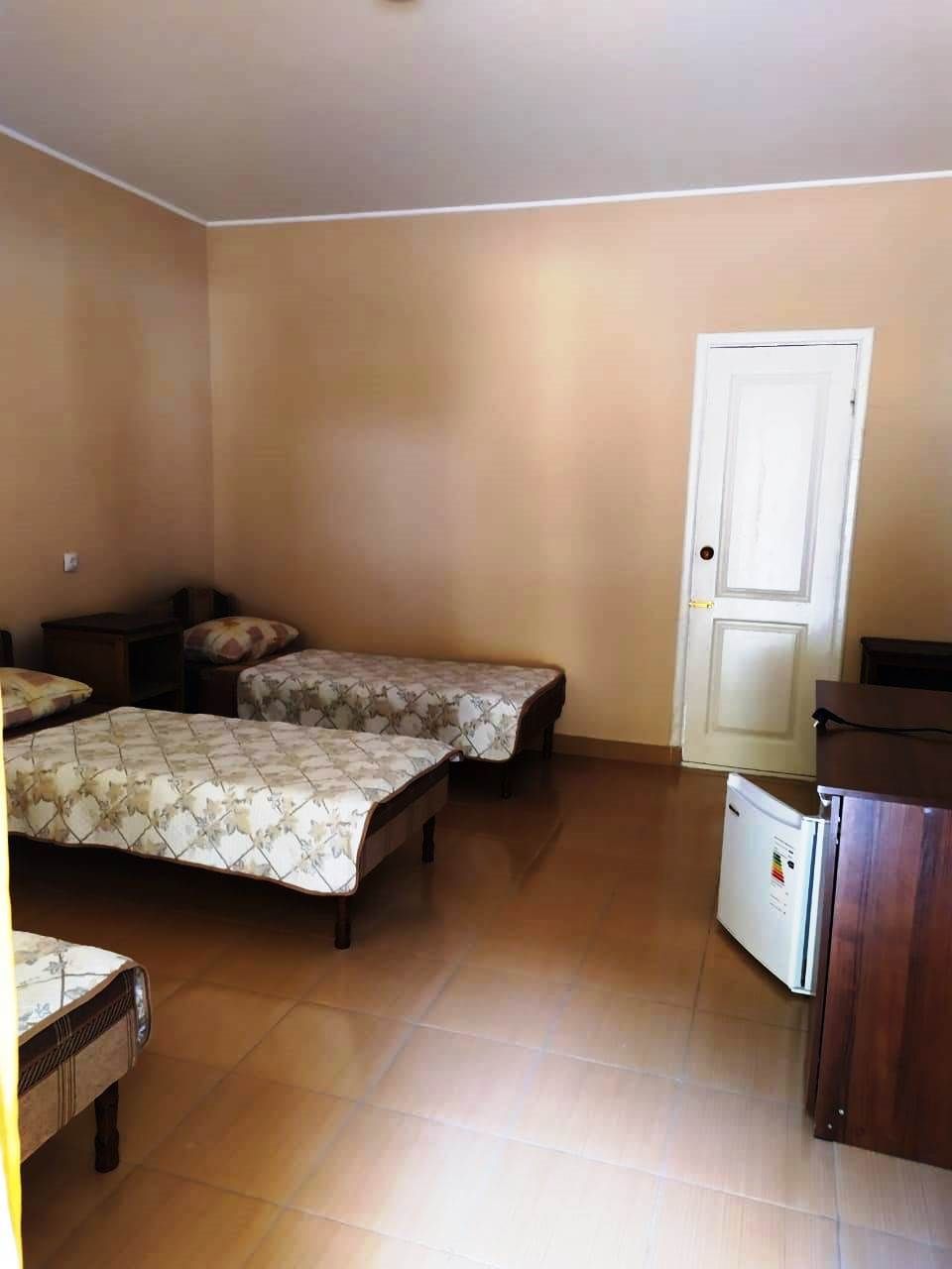 Оснащение номеров: односпальные или двуспальные кровати, прикроватные тумбочки, стол, стулья, шкаф для одежды, холодильник, кондиционер, телевизор