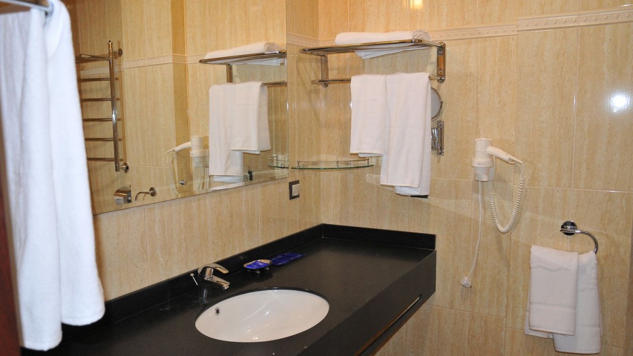В номере: две удобные отдельные кровати, две тумбочки, кресло-кровать, журнальный столик,два стула и сьменный стол, настольная лампа, шкаф с зеркалом, ЖК телевизор, телефон, стеллаж, мини-бар, электрический чайник, набор посуды,сейф, бесплатный wi-fi, кондиционер