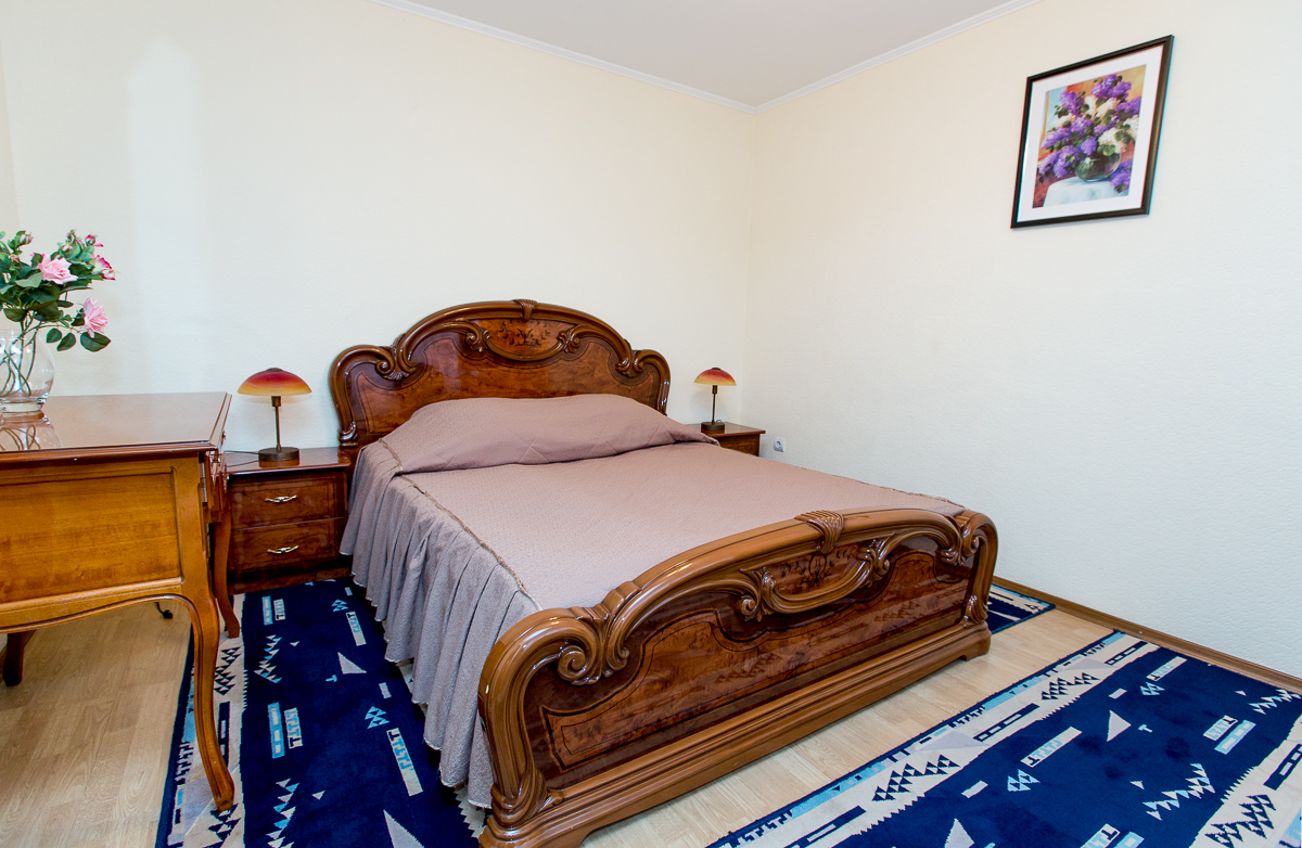 В номере: кровати: две односпальные, либо двуспальная, диван-кровать, два кресла, журнальный столик, прикроватные тумбочки, платяной шкаф, тумба для багажа, письменный стол, два телевизора, холодильник, мини-бар, чайник, набор посуды, система управления микроклиматом